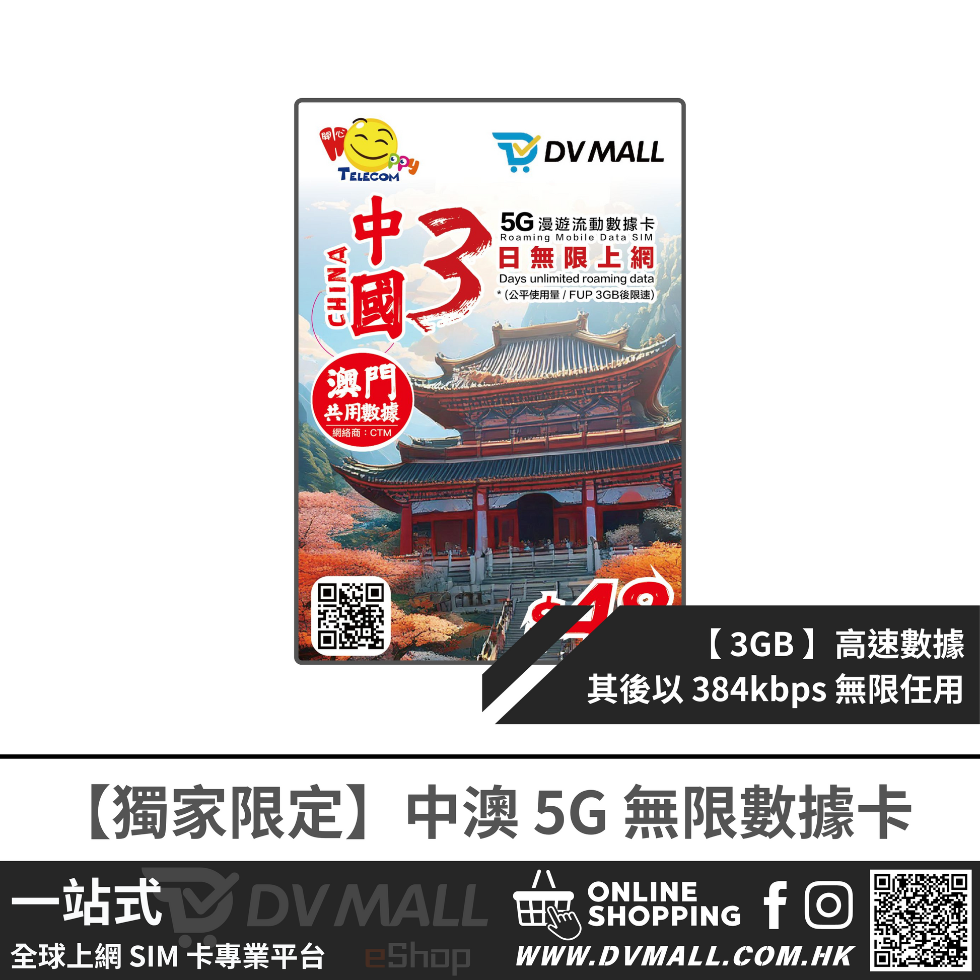 | 日數選擇: | 3日3GB FUP,其後以384kbps無限任用 |