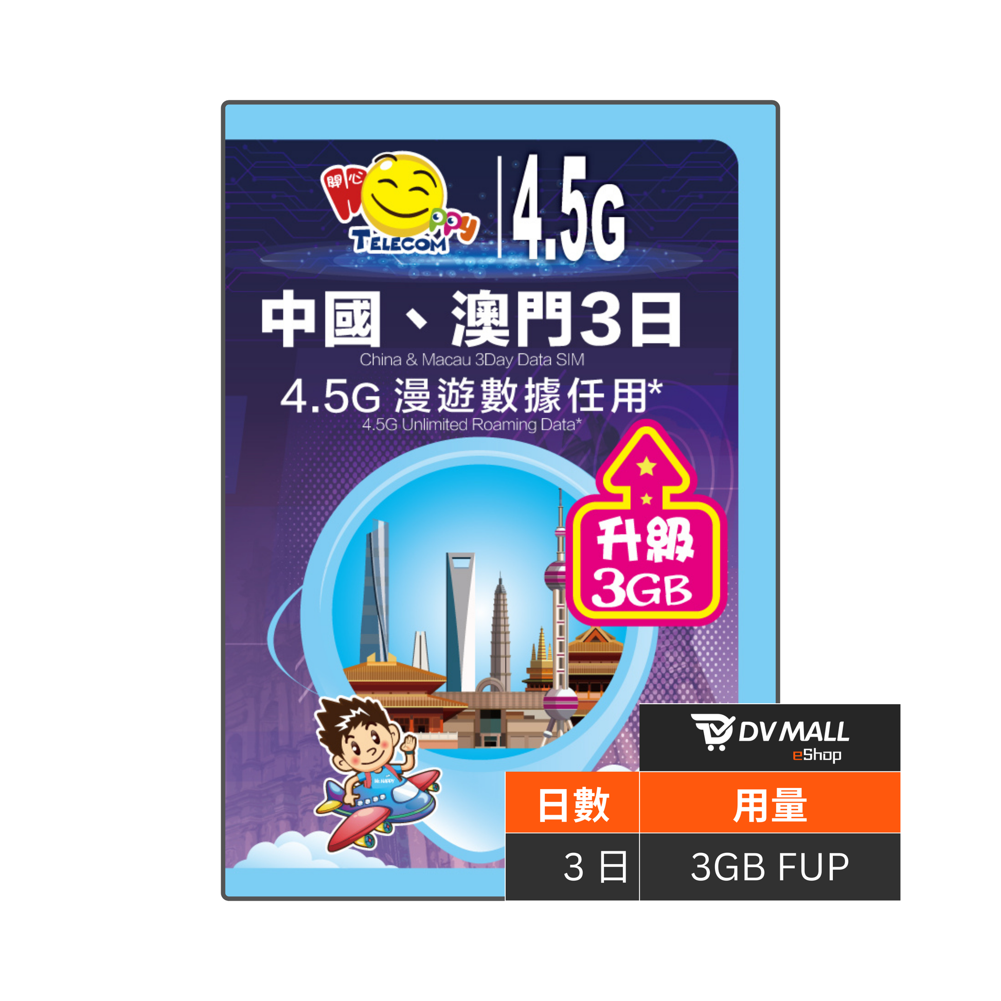 Happy Telecom 4G 中澳 | 3日3GB FUP 無限數據卡 | 中國聯通 | 免翻牆 |即插即用