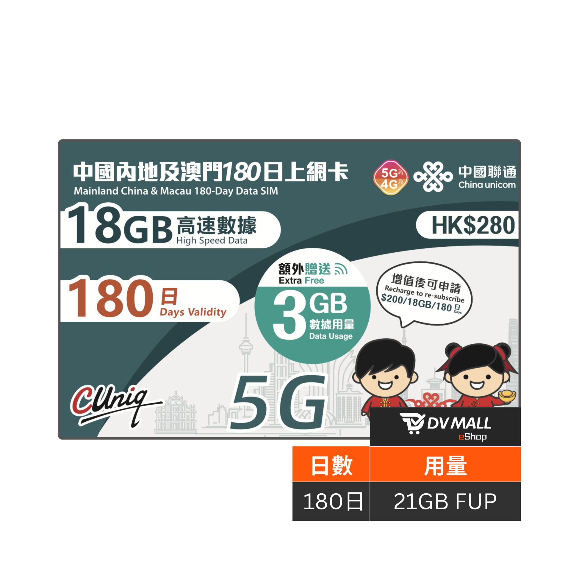 | 日數內容: | 180日21GB,數據用完即止 |