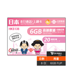 中國聯通 4G 日本 | 8日6GB FUP 無限數據卡 + 20分鐘通話