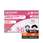 中國聯通 5G/4G 日本 | 10日10GB FUP 無限數據卡