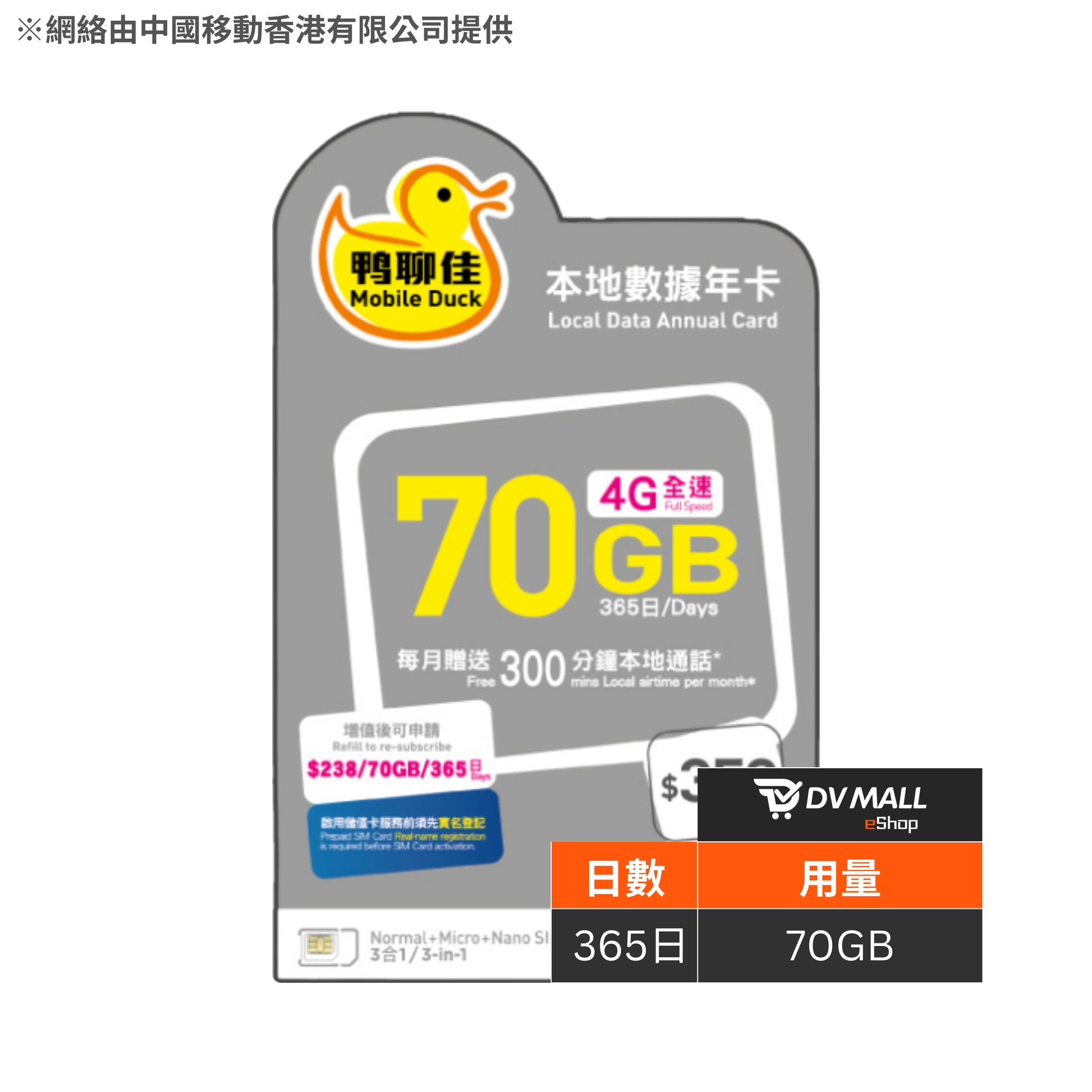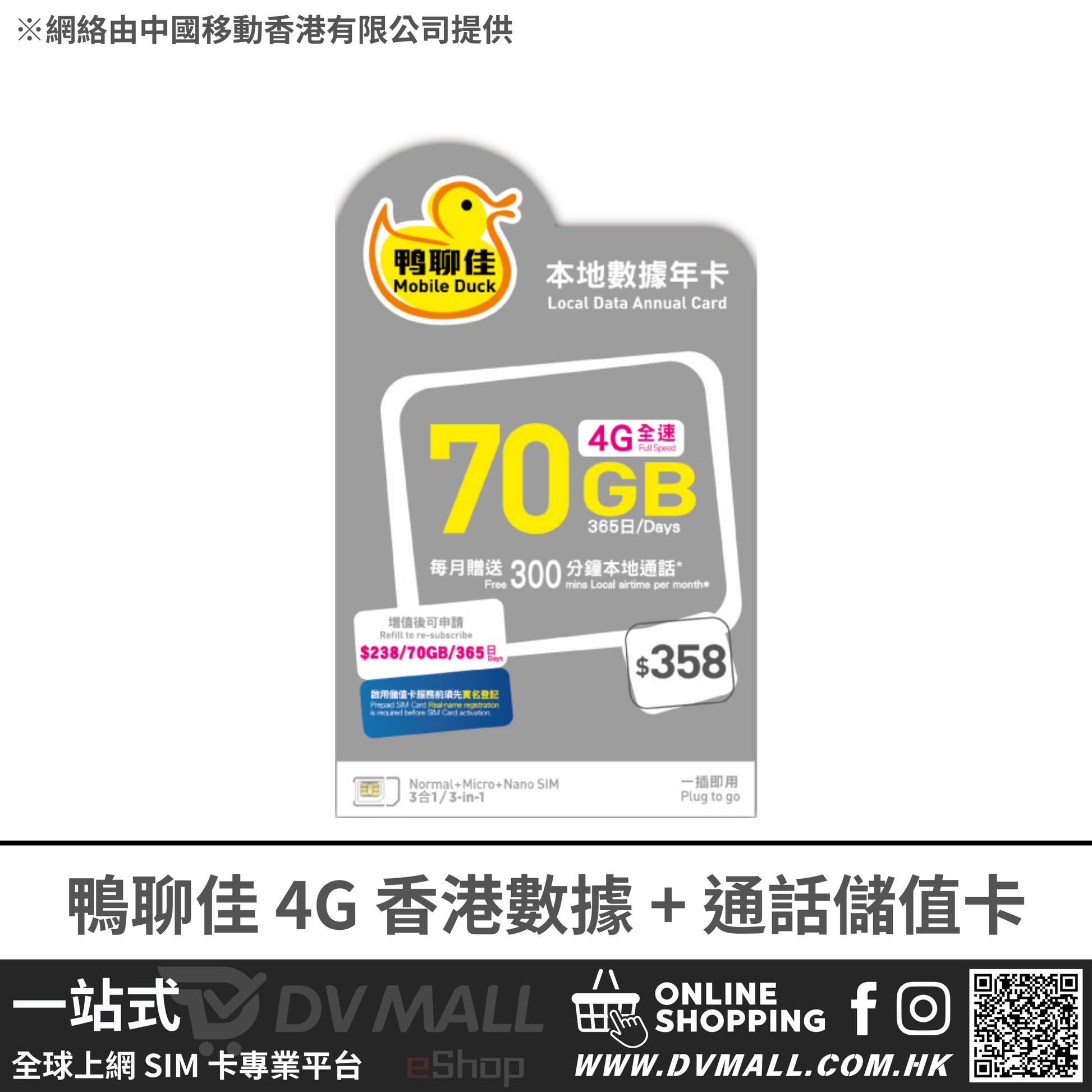 Yaliaojia 4G Hong Kong | 365-day 70GB + 3600 minutes of talk time rechargeable prepaid card | China Mobile network support